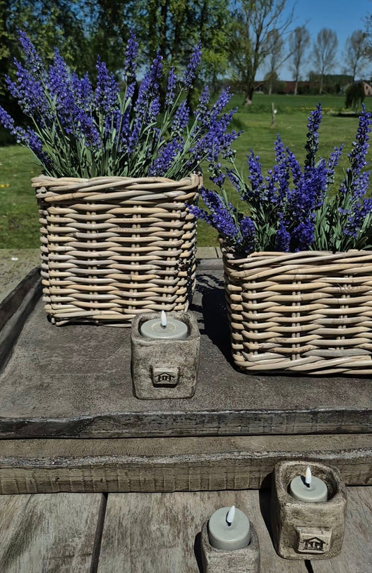 Set vierkante mand D24 H19cm met paarse lavendel